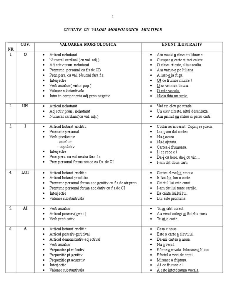 Exemple De Valori Morfologice. Aceast carte este a ioanei. Cuvântul ,,o poate să aibă mai multe valori morfologice și anume: Un copil deseneaz, altul se joac. Maria și ana rezolvă exercițiile. Fiine, lucruri, fenomene ale naturii exemple: A) o fată trecea pe stradă.
